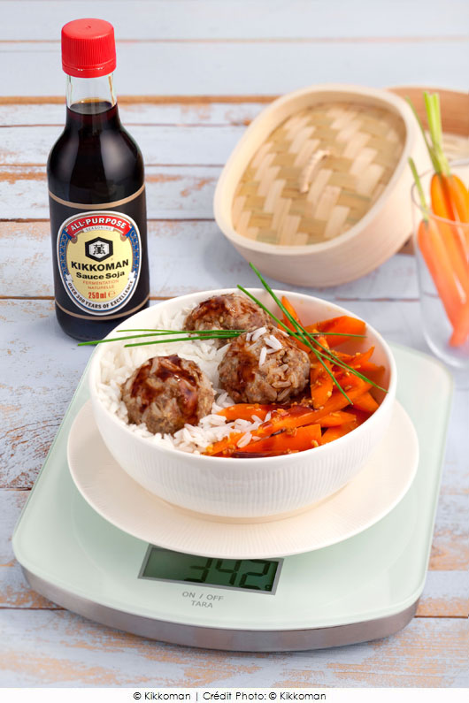 – Si vous souhaitez limiter votre consommation en sel, utilisez la sauce soja naturellement fermentée Kikkoman à teneur réduite en sel à la place de la sauce soja classique.