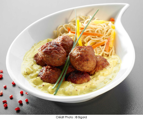 Boulettes gourmandes, sauce oignons, moutarde et curry