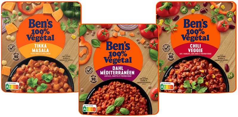 En 2023, la marque continue d’innover pour la transition alimentaire en dévoilant sa toute nouvelle gamme inédite et disruptive « Ben’s 100% végétal », qui se positionne en véritable alternative à la viande, pour un repas complet et prêt à être dégusté. Elle propose ainsi de délicieuses recettes de cuisine du monde saines et équilibrées, avec un Nutri-Score A – Tikka Masala, Dahl Méditerranéen et Chili Veggie – idéales à déguster avec du riz.