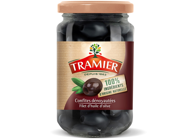 Tramier propose en toute simplicité son Olive Noire Confite Dénoyautées en version 100% Ingrédients d’Origine Naturelle. À travers cette nouvelle recette, ces olives noires sont sans gluconate ferreux. Qu’est-ce que cela signifie ? Le gluconate ferreux est un additif largement répandu en France et sans danger pour la santé. C’est un stabilisant qui a pour rôle de fixer une couleur noire intense sur l’olive.