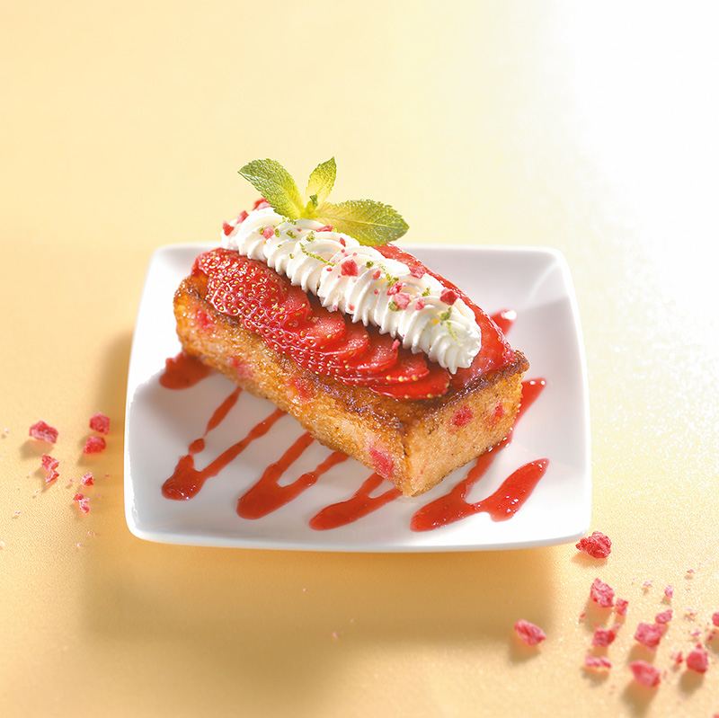Brioche aux pralines roses perdue et fraises Label Rouge