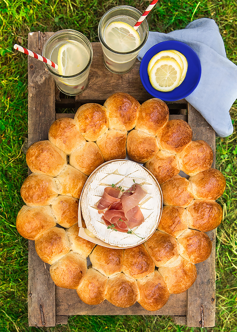 Brioche française fourrée autour d’un fromage rôti et jambon cru Aoste