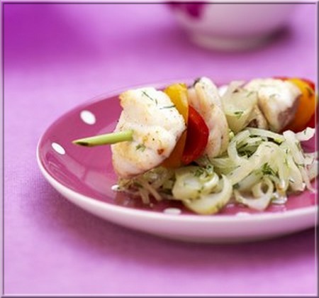 Servez ensuite les brochettes sur la fondue de fenouil.