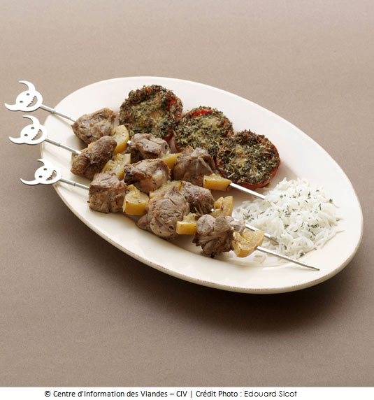 Le servir avec les brochettes accompagnées de riz basmati et de tomates provençales.