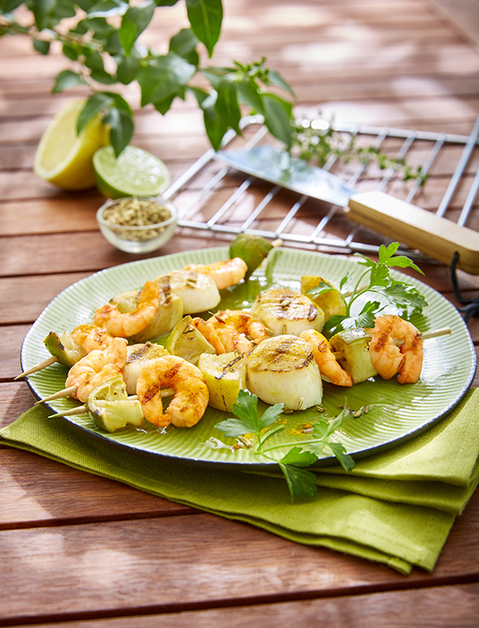 Les brochettes : recette par excellence de la cuisine estivale. Pour varier les plaisirs, cet été, Escal donne le ton avec une recette de brochettes de la mer faites maison mêlant crevettes et noix de Saint-Jacques. Fraîcheur et saveur au rendez-vous !