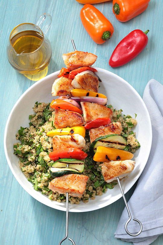 Brochettes de dinde aux légumes du sud et quinoa aux herbes