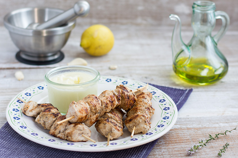 Brochettes Libanaises de Poulet Fermier d’Auvergne, crème d’ail