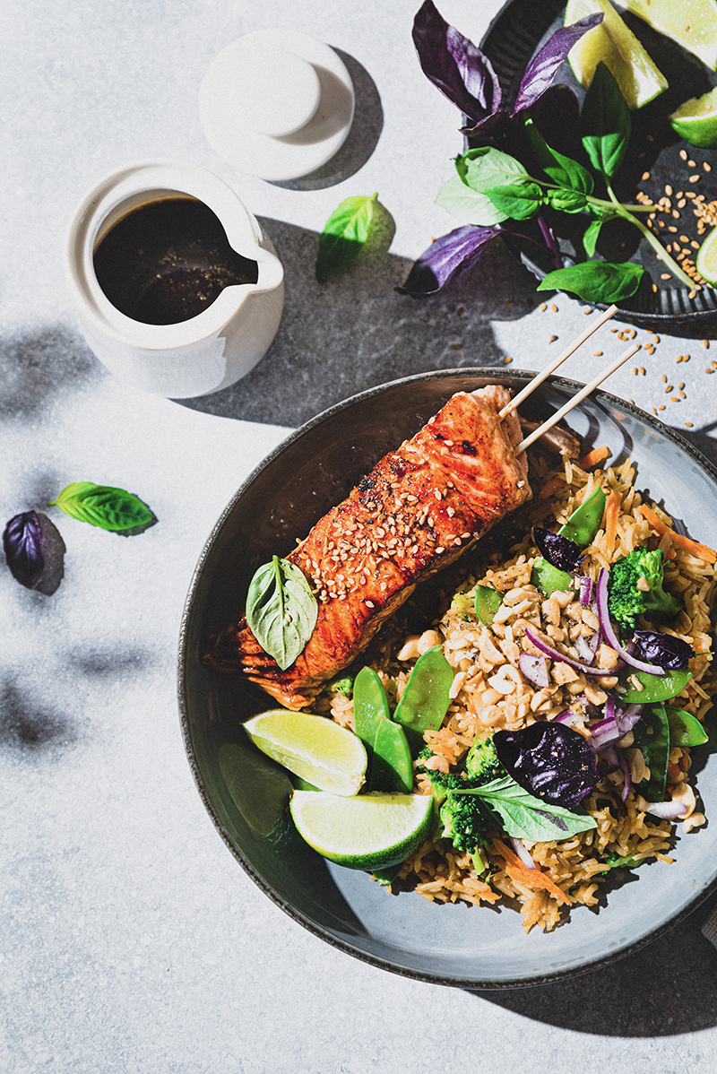 La saison des grillades est lancée, nous vous proposons nos brochettes yakitori de saumon de Norvège au barbecue. Ce type de cuisson permet de sublimer le saumon sans ajout de matière grasse superflue, de quoi conserver toutes sa saveur et préserver ses apports nutritionnels, riches en vitamines A, D, B12 et oméga-3.
