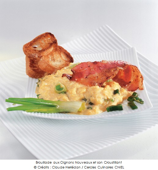 Brouillade aux Oignons Nouveaux et son Croustillant