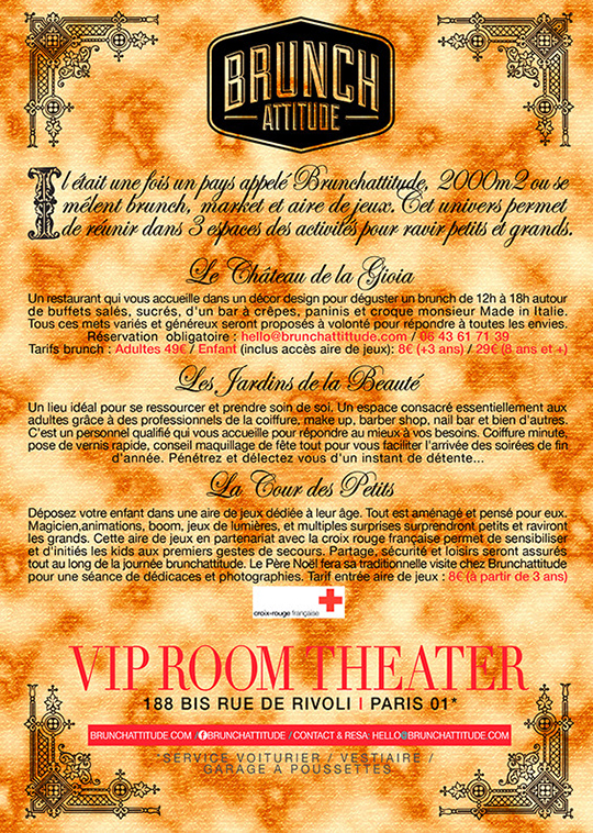 Il était une fois un pays appelé BrunchAttitude, 2000m2 ou se mêlent brunch, beauté et aire de jeux. Cet univers permet de réunis dans 3 espaces des activités pour ravir petits et grands…
