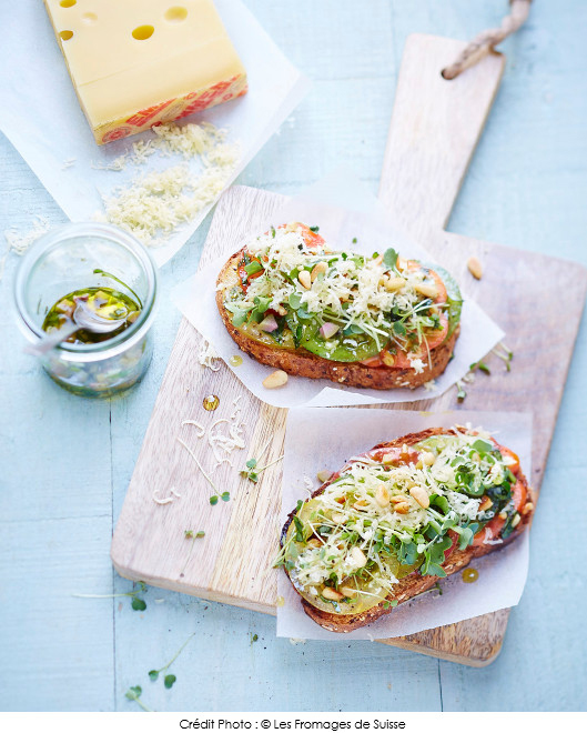 Bruschetta de tomates de saison et L’Emmentaler AOP suisse