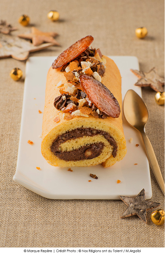 Bûche individuelle choco/nougat et tuile caramel