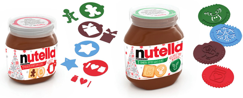 Meilleurs alliés pour des recettes Nutella® réussies, des tampons et des pochoirs sont à retrouver dans les couvercles des pots de 400g et 750g. 4 pochoirs et 4 tampons aideront les pâtissiers à réaliser de délicieux biscuits de Noël à mettre au coin de la cheminée !