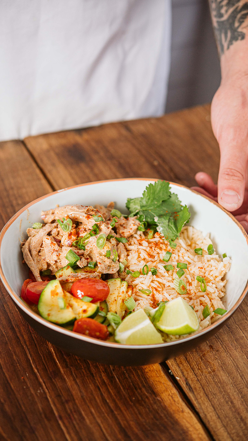 ②• Le buddha bowl : couper la courgette en fines tranches et les faire revenir dans une poêle à feu moyen ainsi que les tomates cerises. Dans une autre poêle, faire cuire la pintade et la moitié de la marinade à feu doux avec un filet d’huile d’olive, puis émietter la pintade dans une assiette et mélanger avec la marinade réservée. Verser le riz et deux fois son volume d’eau dans une casserole ainsi que le curry et du sel. Couvrir et laisser cuire en remuant de temps en temps jusqu’à absorption complète de l’eau. Laisser refroidir Dans des bols ou assiettes creuses, répartir les différentes préparations.