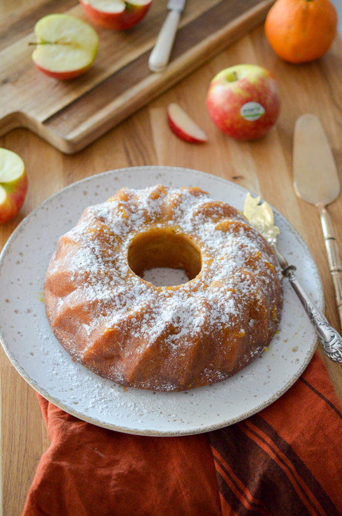 ⑤• Fouettez les œufs avec le sucre jusqu’à ce que le mélange blanchisse (environ 2 à 5 minutes). Incorporez le mélange sec, ainsi que la préparation à base de beurre et de citron. Ajoutez les dés de pommes et versez dans un moule à bundt cake beurré et fariné. Glissez au four 40 minutes.