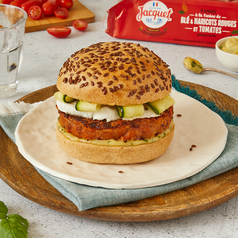Riches en fibres, sources de protéines… On ne compte plus les bienfaits des légumineuses. Alors qu’elles font leur retour dans les assiettes, Jacquet innove et les embarque dans des pains burgers inédits. Pois chiches ou haricots rouges font leur entrée dans les burgers maison pour plus de saveurs et des bienfaits en bonus. Pour tout savoir, c’est par ici !