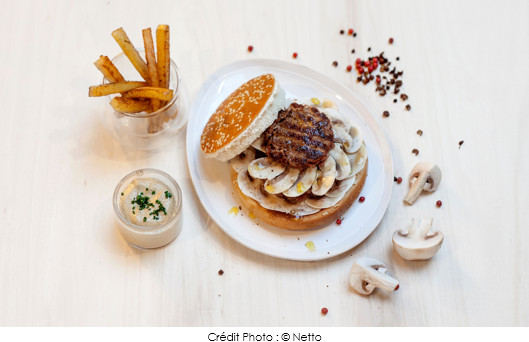 Servez vos hamburgers accompagnés de la crème de champignons à part.