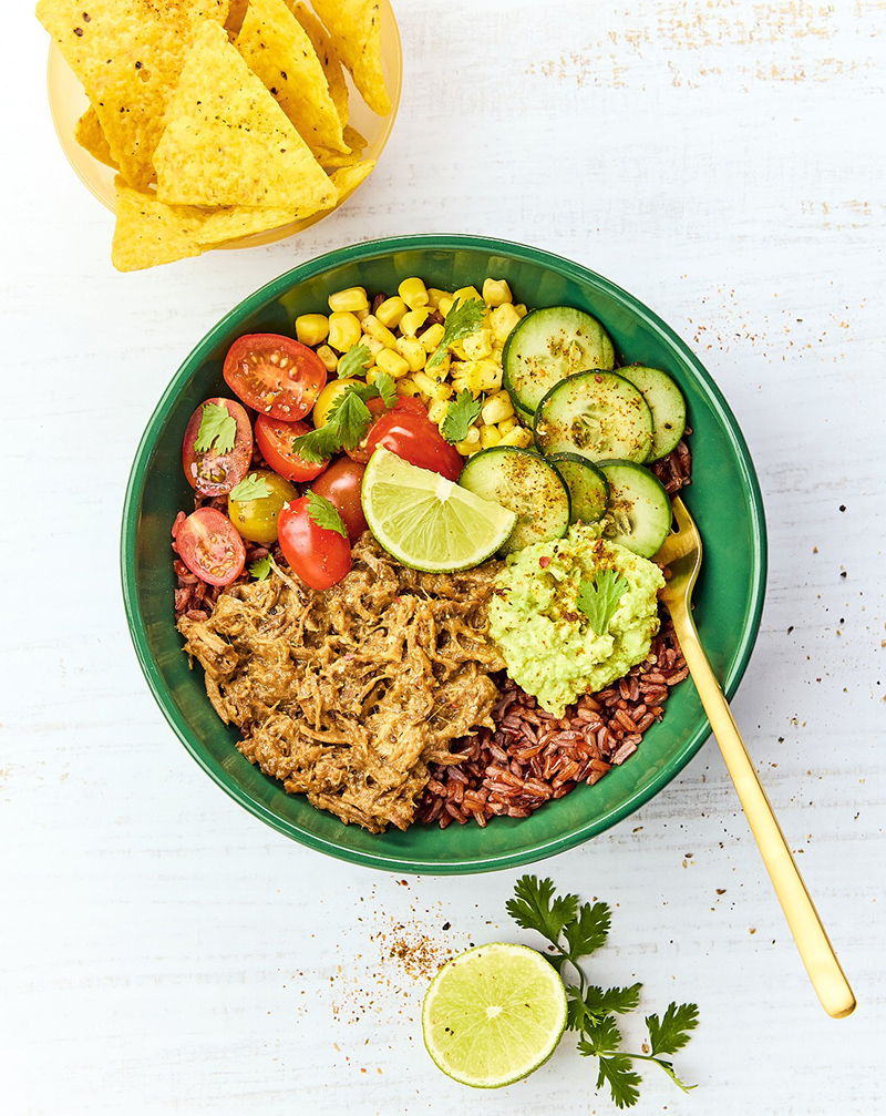 Un bowl coloré, frais et généreux où le fondant du Pulled Pork rencontre le croquant des légumes, la douceur de l’avocat et le peps du citron vert, relevé d’épices mexicaines et de coriandre.