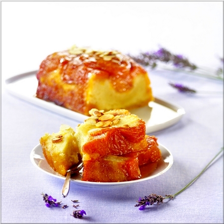 Cuire 40 minutes au four. Démouler tiède et parsemer d’amandes effilées légèrement grillées à sec dans une poêle.