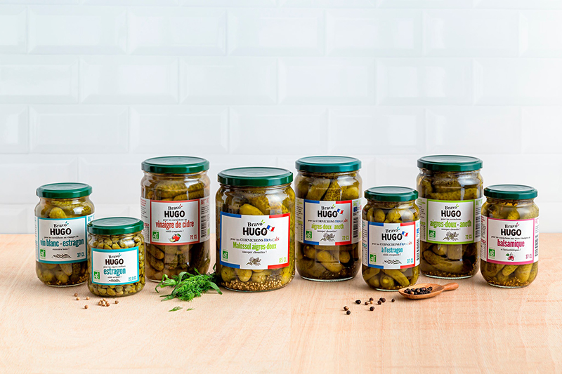 La marque de pickles bio Bravo Hugo propose, depuis 2019, une gamme complète de cornichons français bio, cornichons européens bio, et câpres bio en magasins spécialisés bio. A travers cette nouvelle marque, le groupe Reitzel se donne pour mission de sélectionner et transformer le végétal bio en de délicieux pickles pour une alimentation saine et joyeuse. Les condiments de la marque répondent aux attentes de consommateurs en quête de produits labellisés « agriculture biologique » ayant du caractère. Sa gamme de cornichons français bio a pu voir le jour grâce aux engagements pris par la PME Reitzel depuis 2016 pour relancer la filière française du cornichon. Pour produire du cornichon français bio et diversifier la filière, Reitzel s’est entouré de deux agriculteurs en Sarthe et en Maine-et-Loire, justement rémunérés, liés par la même volonté de produire toujours mieux. Les produits Bravo Hugo sont aujourd’hui disponibles chez Biocoop, Naturalia ou encore l’Eau Vive, à des prix accessibles au consommateur.