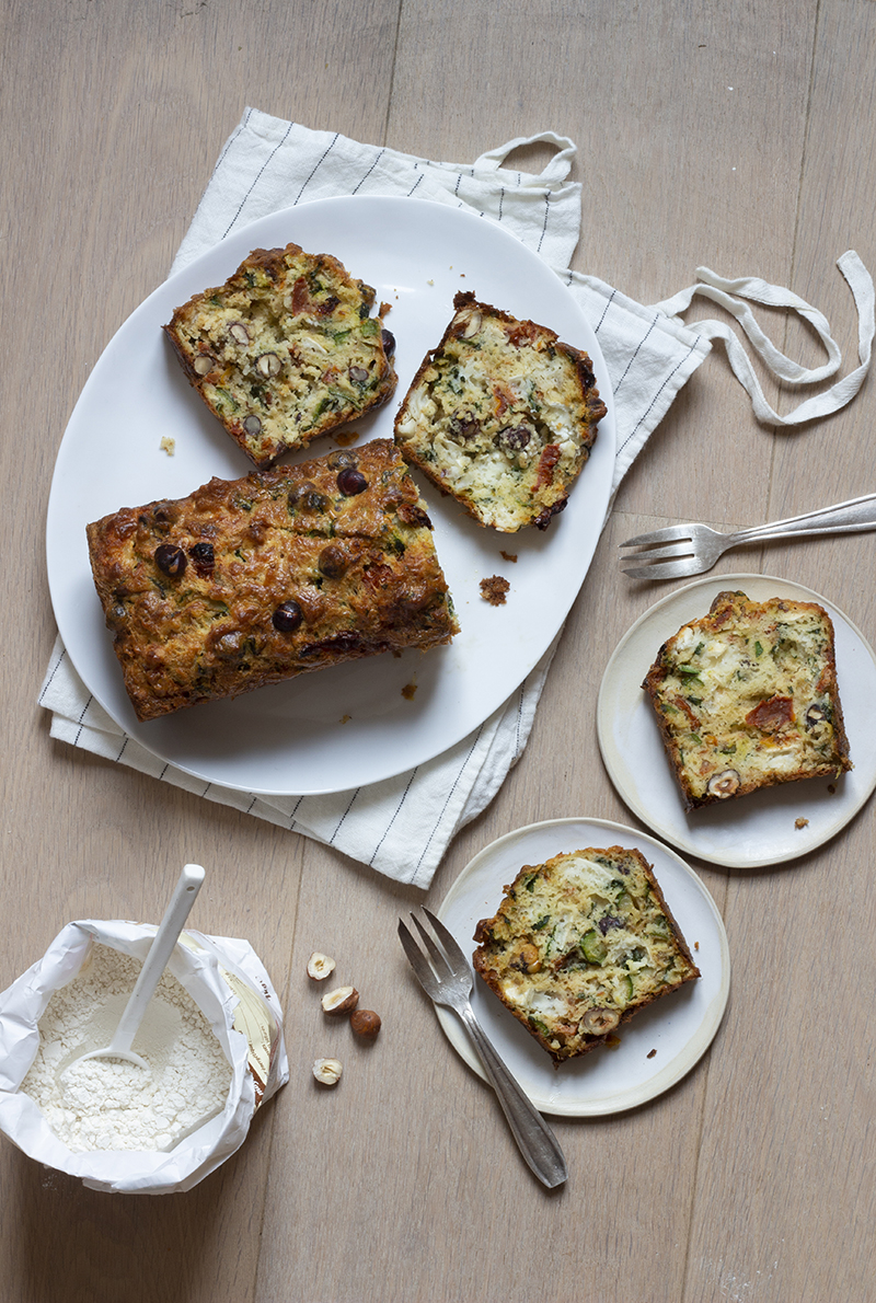 Cake aux courgettes et au chèvre à la farine de blé tendre