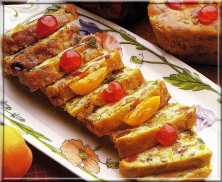3.Mélanger farine, levure et épices. Ajouter la préparation précédente, vanille, noix, puis en dernier tout les fruits confits. Bien mélanger.