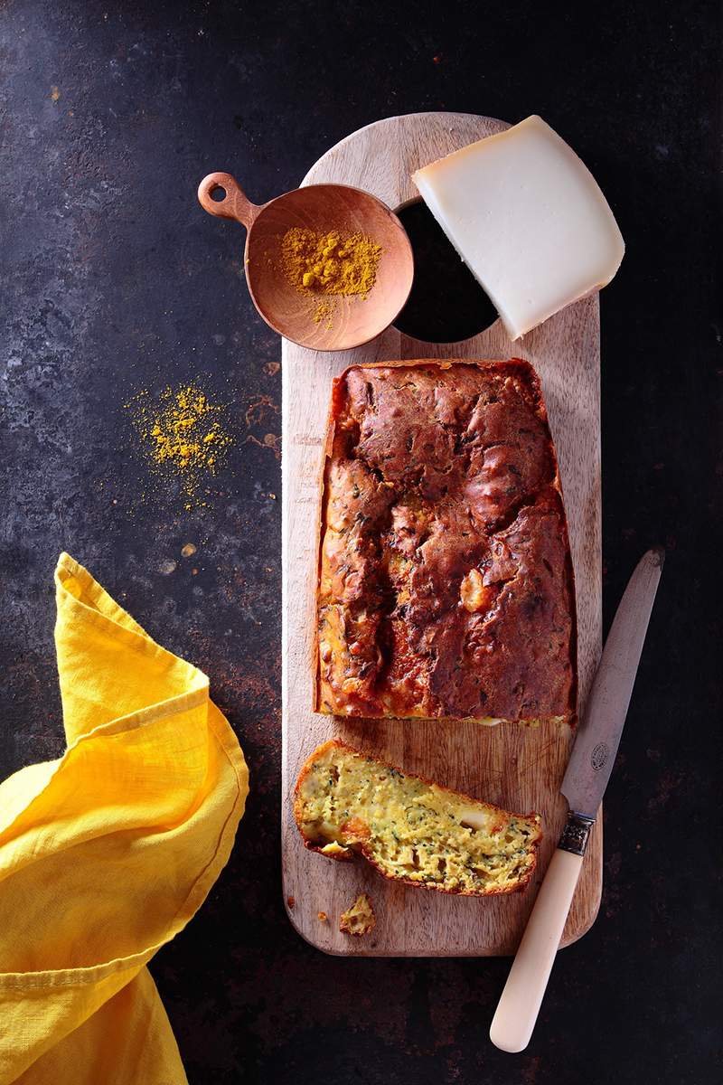 Cake moelleux à la courgette, au curry et à la tomme de chèvre