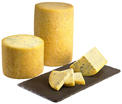 La Fourme de Montbrison se présente sous la forme particulière d’un cylindre orangé laissant apparaitre des trous d’aiguille. Sa pâte de couleur crème, est marbrée d’un bleu-vert souvent réparti inégalement.