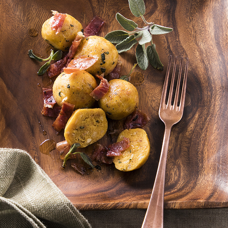 Canederli aux amandes et jambon de Parme