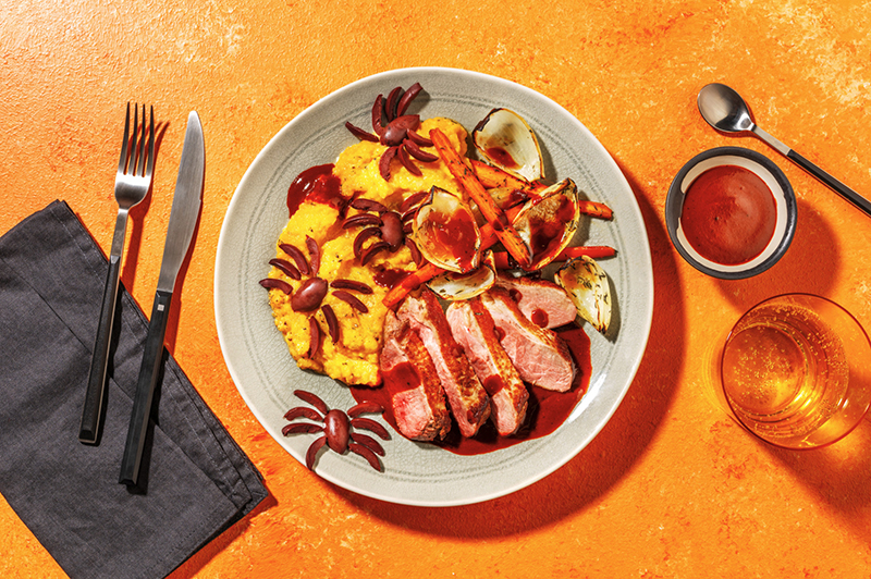 Envie de donner des frissons à vos convives tout en les régalant ? Réalisez cette recette de purée de courge ornée d’araignées faites d’olives Kalamata, accompagnée d’une savoureuse canette avec sa sauce ensorcelante. Une recette délicieusement effrayante qui saura enchanter petits et grands !