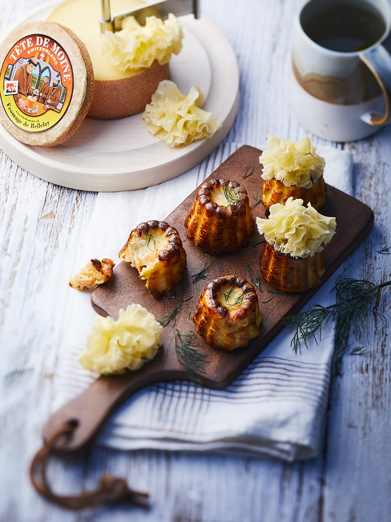 Cannelés au saumon et à l’aneth surmontés de Tête de Moine AOP
