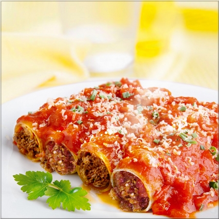 12• Couvrir à nouveau de sauce tomate cuisinée ail et oignon Heinz puis répéter l'opération jusqu'à épuisement des cannelloni.
