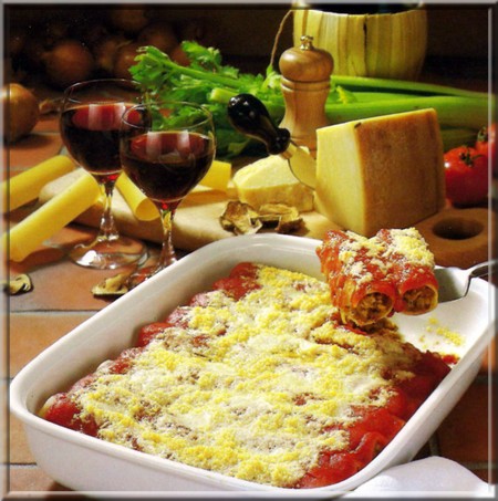 3.Mélanger coulis et vin. Y ajouter céleri lavé et haché, muscade, origan, sel et poivre. Porter à ébullition. Recouvrir les cannellonis de cette sauce. Saupoudrer de gruyère.