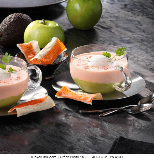 Cappuccino de surimi à l’avocat et mousse de pomme verte au gingembre