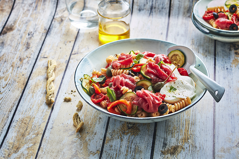 Carpaccio de bœuf BIO, salade de pâtes et légumes à la Provençale
