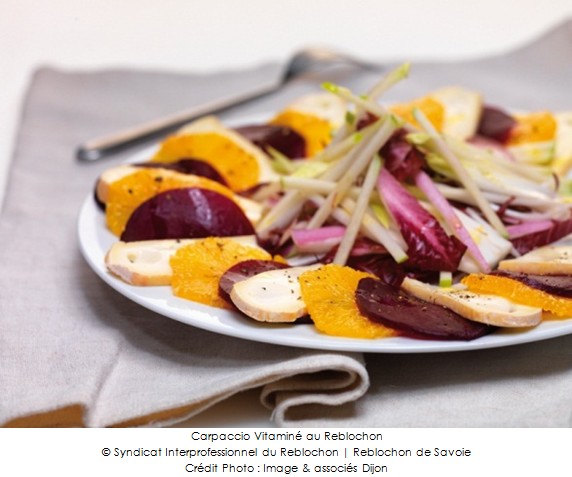 1• Coupez le Reblochon et les betteraves en tranches les plus fines possible, idéalement à l’aide d’une mandoline.