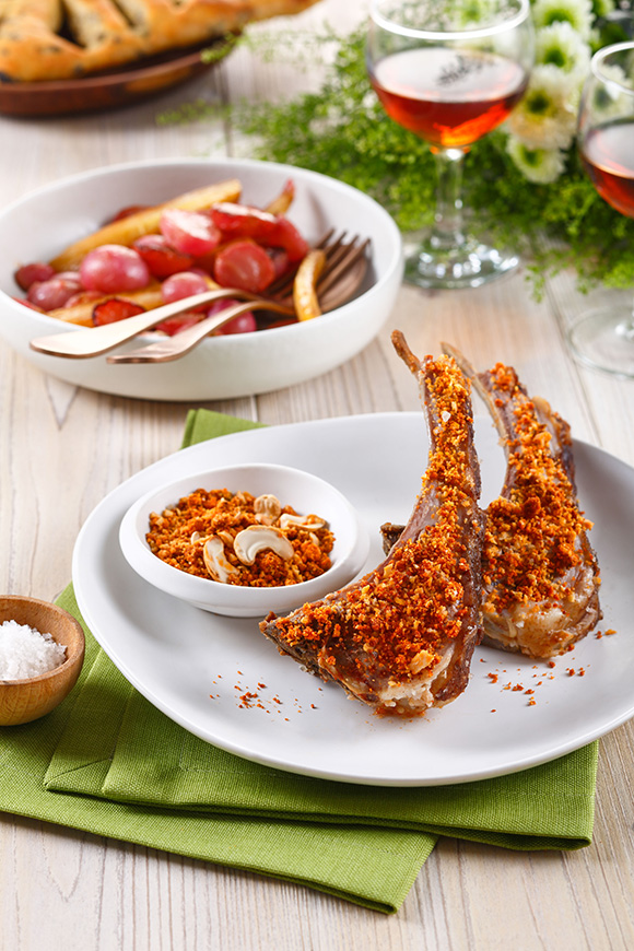 Carré d’agneau en croûte de sel Le Guérandais et crumble de noix de cajou