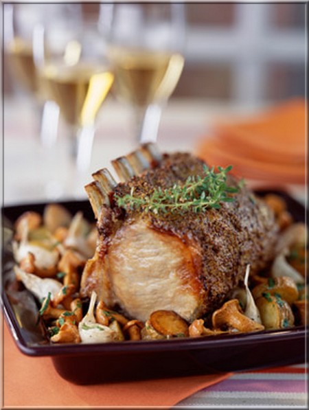Carré de Porc à la Moutarde Girolles et Pommes de Terre Ratte