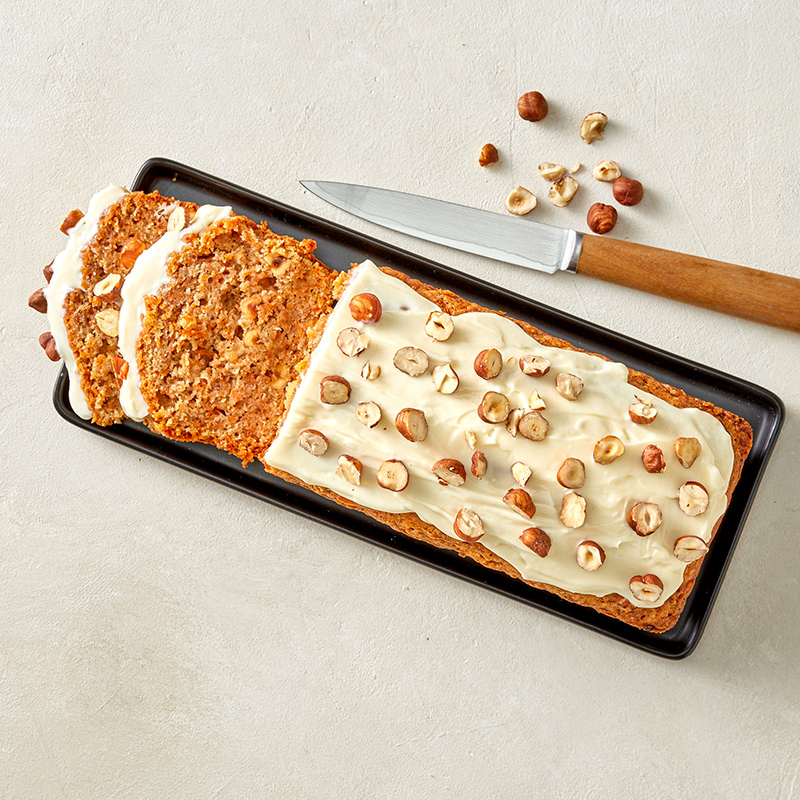 Une fois le gâteau cuit et totalement refroidi, étaler le mélange précédant et saupoudrer d'une poignée de noisettes concassées.