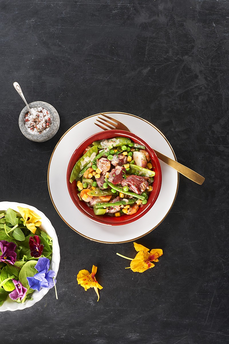 Cassolettes de petits légumes aux Gésiers de Canard confits