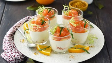 Mini panna cotta apéritive au saumon fumé, et gambas
