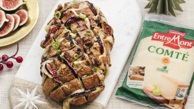 Pain hérisson, figues, portion Comté Entremont et ciboulette