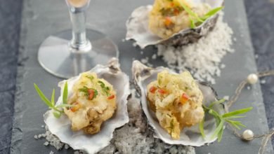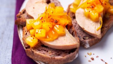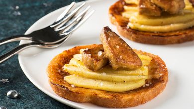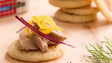 Mini blinis au Foie de morue, oignon croquant et graines de pavot