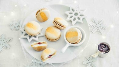 Macarons au foie gras et gelée de cerises