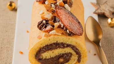 Bûche semi-glacée au chocolat blanc et cœur de fruits