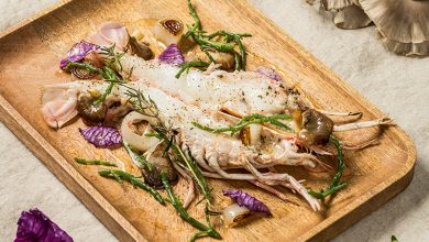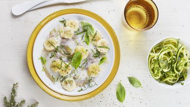 Sashimi de noix de Saint-Jacques à la banane et grenade