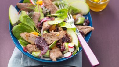 Salade d’aiguillettes de canard Montfort, pomme verte et cranberries