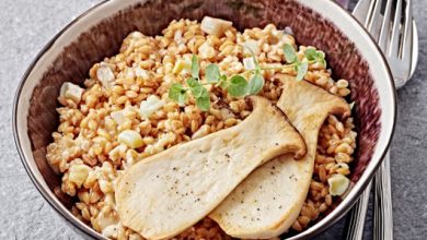 Risotto au Reblochon, petit épeautre et champignons Eryngii