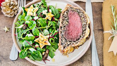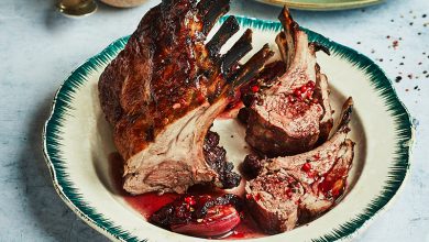 Carré d’agneau rôti au vin rouge et aux cranberries, purée de panais