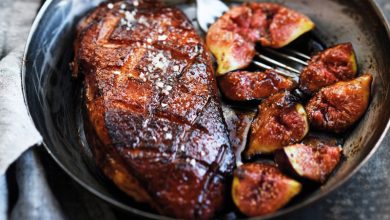 Magret de canard et figues marinées au miel et à l’huile d’olive Millésime Cauvin